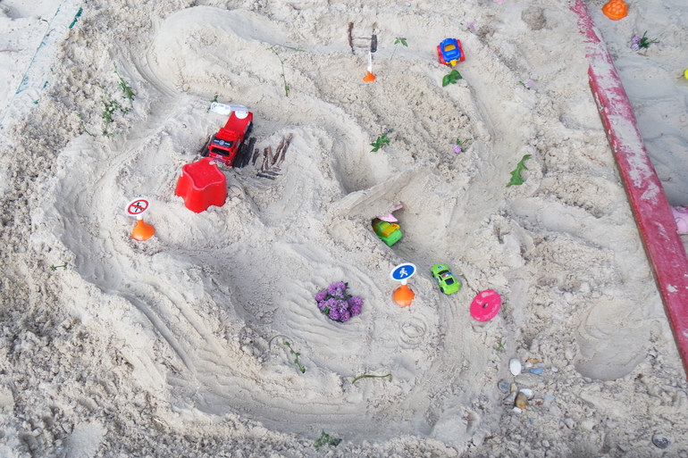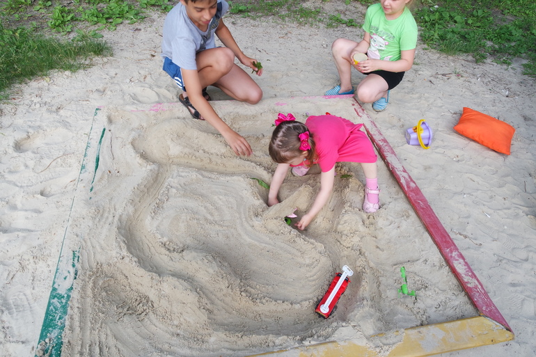 Дети два дня играли в куличики рядом с песочницей, чтобы не сломать дорогу)))