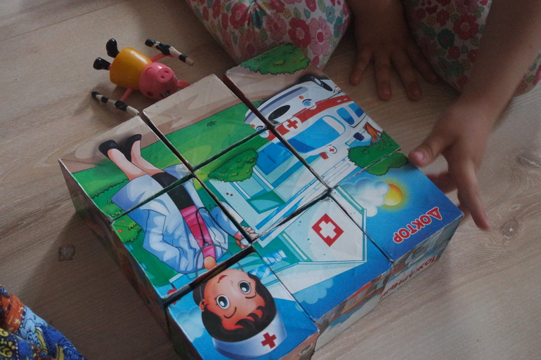Вот такой город Лиза часто строит в детской. Анюта строит дома.