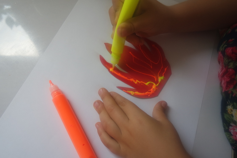 Сначала нарисовали огонь контурными красками.