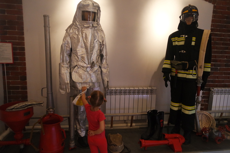 На прогулке рассмотрели центральную пожарную часть и отправились в музей.