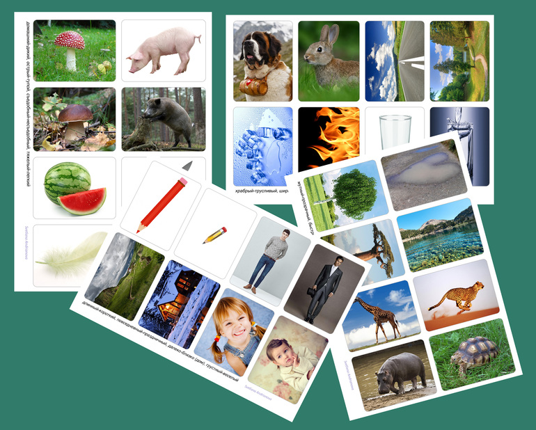1. Познакомьте ребенка со словами-антонимами на картинках.