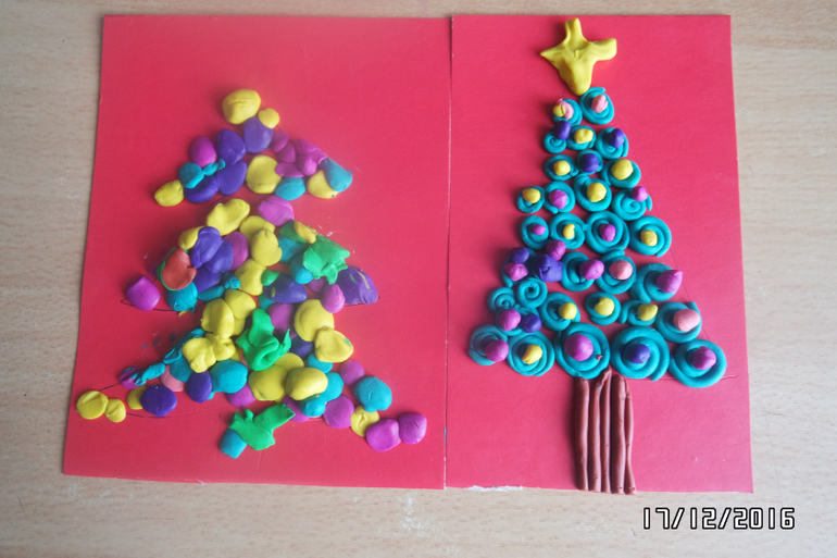 Новый год и Рождество (книги, игры, поделки, идеи)Простые пластилиновые елочки.