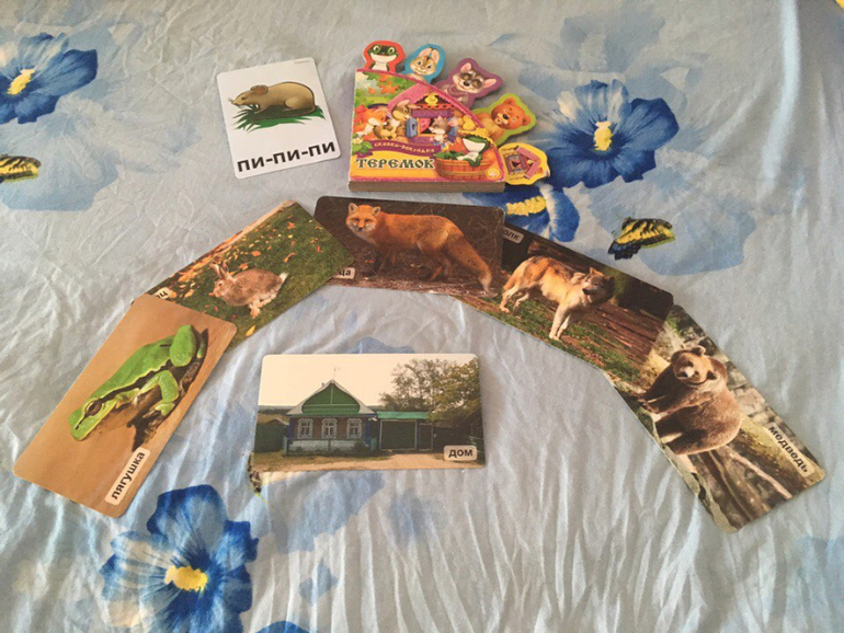Игры по литературным произведениям, ТеатрА всё про книжки) Их сейчас столько много, разных, красивых, интересных, по форме, по содержанию. Но у Мирослава есть самые любимые, которые мы должны читать минимум 2 раза в день. Я очень рада такой любви к книгам, но год читать репку.... и убрать их не могу, сыну, ведь интересно, он же хочет и в этом ничего плохого не вижу. По-этому пытаюсь разнообразить наши любимые сказки. Например: теремок) Сын хорошо знает всех героев, я решила устроить ему кукольный театр на тему этой сказки. Но лисы, мышки, лягушки, в наличии не оказалось. Знаю, что есть специальные театры и пальчиковые игрушки, но я захотела это воплотить сейчас, вот прям загорелась) Достала карточки из "мира на ладошке" , подобрала всех героев, кроме мышки, ее пришлось взять из Говорим с пелёнок, заодно, стишок почитала) даже теремок нашла. И рассказывала сказку, накладывая одну карточку на другую. Мирославу это очень понравилось, тем более, что именно сейчас он начал собирать конструктор. Все, что накладывается друг на друга и собирается, вызывает у него восторг) сегодня 3 раза такой спектакль посмотрели. С остальными сказками хочу сделать тоже самое. Надо заказать такие кукольные сказки, животных найти можно, а вот Бабку с Дедкой, отдельно вряд ли) А по поводу животных, узнала, что есть крутые фигурки, типа дорогих "animal planet" в фикспрайсе, каждая фигурка по 50₽) в ближайшее время, я туда рвану и напишу о них.