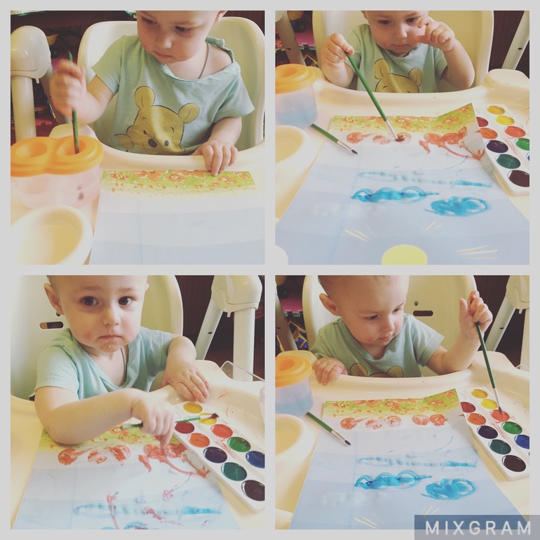 Творческое развитиеМирослав совсем взрослый))) говорят, чужие дети быстро растут, а свои то, когда успевают так вымахать? На площадке постоянно со всеми общается, прям диалог ведёт. Жестикулирует, такой серьезный. Больше всего ему нравится общаться со взрослыми. Сидят мамочки на лавочках, болтают. Он подходит к ним и подключается к беседе. Любит имитировать, что говорит по телефону, ходит из угла в угол и болтает. Но вместе с этим, новых слов не было давно. Речь становится активнее, но из старых слов. Сваливаю на клыки, слышала, что такое может быть. Читаем книжки, смотрим карточки, как и прежде. А вот моторике, я перестала уделять должное внимание. Рисуем редко, возобновляем наше творчество, заодно и проверим, так ли моторика благотворно влияет на развитие речи. Ну, раз Мирослав уже большой, то и рисовать будет, как взрослый, кисточкой. Долой пальчиковые краски) купила в детском мире самую простую акварель, гуашь, кисточки и мелки. Рисуем на листах из Моих первых шедеврах , потому что на обычных белых листах мне то скучно рисовать, не то, что сыну. Все прошло очень даже хорошо, прям отлично) Мирославу понравилось, опускать кисточку в воду и видеть, как меняется цвет воды. По привычке, рисовал пальцем) но позже втянулся) рисовали цветочки, капельки, солнышко. А вчера, когда погода располагала, рисовали на асфальте мелками, минут 5, а потом его увлекло, кидать их об асфальт) звук прикольный и разбивались интересно) Кстати, акварель отмывается легче, чем пальчиковые краски)