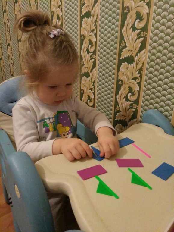 Ещё собирали корабли из геометрических фигурок, считали их.