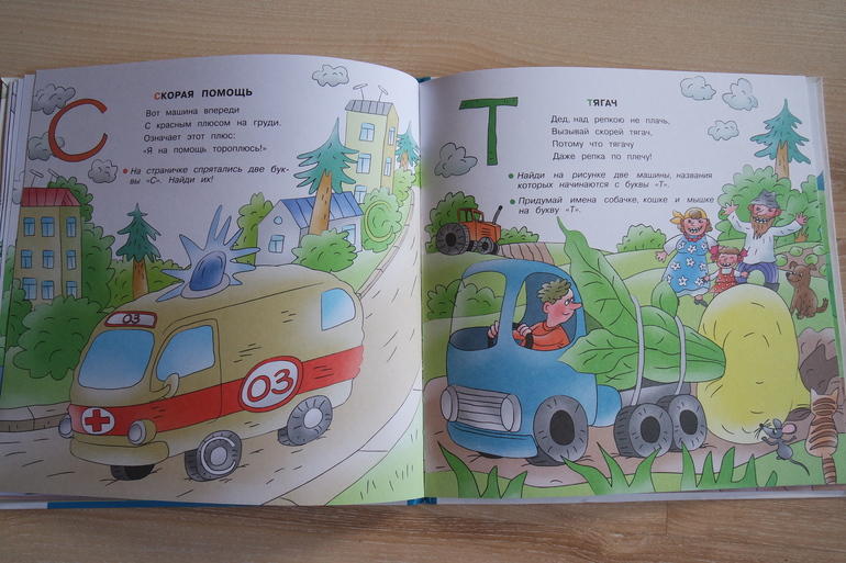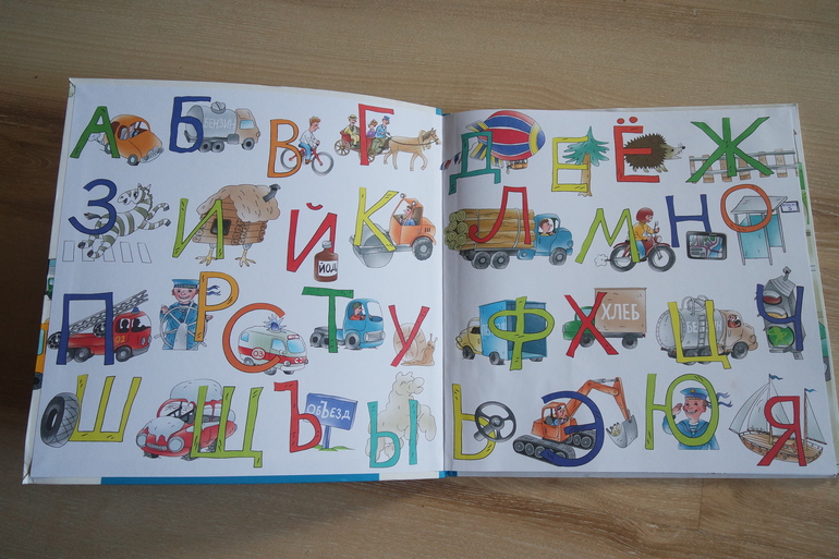Очень красивая и интересная книга для малышей "Дорожная азбука". Буквы мы пока не учим, хотя некоторые Лиза уже знает... С помощью этой книги учились выделять и определять первый звук слова.