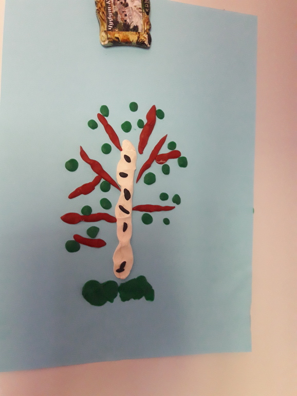 - сделали картину из пластелина "береза". Повторили из чего состоит дерево.