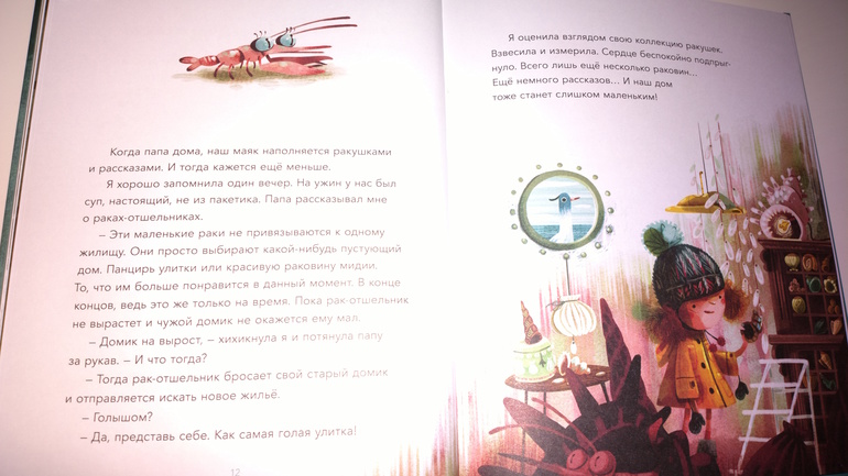Иллюстрации замечательные, рассматривая их, хочется взять кисть в руки и тоже изобразить маяк, море и морских обитателей.