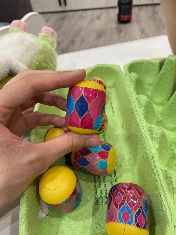 Для надежности я обернула контейнеры в пленку для пасхальных яиц. Это отличная игра для развития мелкой моторики и внимания, которая точно увлечет любого ребёнка!