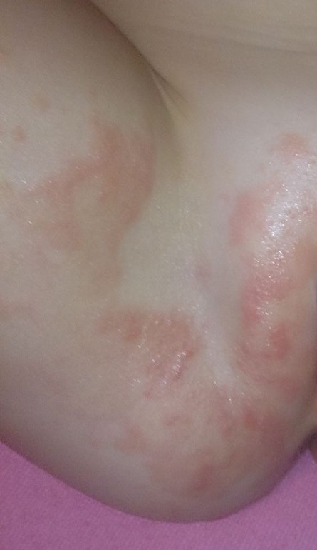 Здравствуйте, может вы сможете нам помочь... Я уже и не знаю куда нам обратится. Доченьке 3 года 2мес. и вот где-то с лета у нас появились высыпания, но я никак не могу подметить на что((((.... По началу я высыпания смазывала Фенистилом , потом Адвантаном и давала Супрастин или Зиртек, Ломилан - проходило, но потом снова начиналось с новой силой. Мазала кремом Циновит но..... у нас на этот крем какая-то странная реакция - краснеет ещё больше! Обращались к врачам и поликлинике и в частную клинику к аллергологу - Ставят диагноз нам - атопический дерматит.прописывали Фенкарол,Зодак, крем Пимафукорт. Предпоследнее высыпания были где-то 18 октября, потихоньку стало проходить и вот с 24 октября с новой силой (фото ниже) Сейчас даю Кетотифен, Супрастин, смазываю Адвантаном и Топикрем АД. Пропили Ликопид. Сдали общий IgE - 174 МЕ. Стараемся конфет не давать, молочку ограничиваем, ой уже и незнаю что и делать. Записались ещё на 10 ноября к аллергологу, а до этого времени что нам делать???Краснота и высыпания появляется на щёчках, между ножек и на писюхе и Дариночка жалуется что зудит и болит(((( и сейчас мелкая незаметная сыпь по телу.