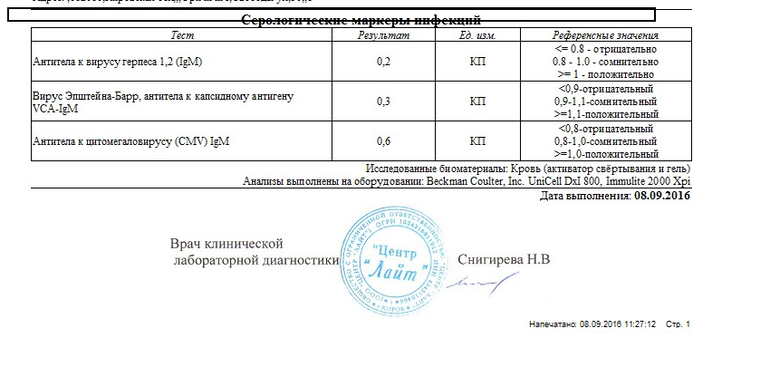 Анализ крови. воспален лимфоузел.