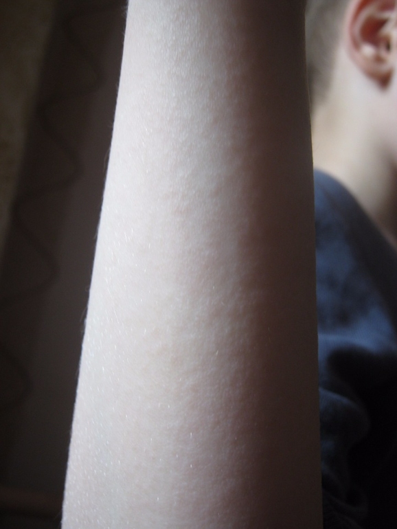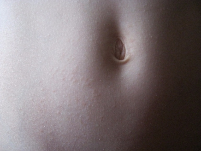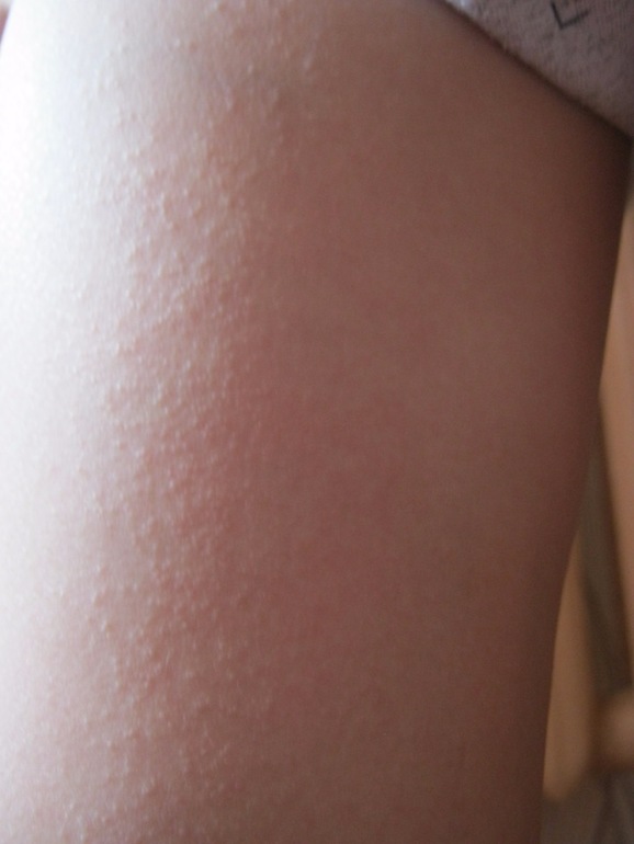 Практически 4 недели назад на поверхности от кисти до локтя на руках, и на внутренней стороны бедер от коленей до паха обнаружила у ребенка странную бесцветную сыпь,которая не чесалась и не доставляла ребенку никакого дискомфорта.Немного сыпи обнаружила и на животе.