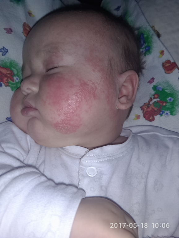 Здравствуйте.Этот ужас начался в 4 мес,нам сейчас 6ой месяц.Мы на ГВ. Исключила продукты,содержащие коровий белок и глютен.Ем в основном вареную гречку и суп с рисом на говядине.из сладкого финики и курага.Врач назначил крем адвантан.но как только его отменяешь, все заново.энтеросгель 3дня.биогайя(либо совпадение_сыпит).кремы атопики.купили урьяж для сухой.спец .так после него все проблемные участки вздулись прям краснотой.диазолин уже не помогает.хотела перейти на ИВ ,но врач сказала не стОит.Не факт что и на смеси аллергия будет.Подскажите,при таком Ат.Дермот. можно вводить овощной прикорм или нет.Планирую кормить до 11мес.и на гречку может быть аллергия?спасибо за ответ.фото прилагаю.