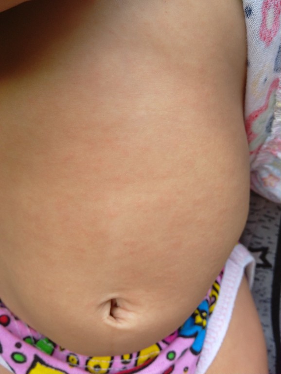 Здравствуйте, подскажите, пожалуйста, у ребенка 8 месяцев поднималась температура до 39 (понижалась жаропонижающим) на протяжении трёх дней. На четвертый день температура была 37, а к вечеру опустилась до 36.6., на пятый день 36.6, но появилась сыпь на животе, спине плечах и шее. Ручки, ножки и попка чистые. Мы сейчас в селе в гостях, поэтому нас осматривала местный фельдшер. Говорит что это краснуха так как увеличены лимфоузлы на шее и горлышко слегка красное, сыпь не ощущается когда проводишь пальцем. Но я читаю в интернете что сыпь при краснухе появляется во время температуры, а вот после вирусной экзантемы после. Хотелось бы знать что у нас на самом деле. Так как у нас девочка и очень важно знать чем она переболела в детстве в дальнейшем. Добавляю фото. Если плохо видно могу ещё раз сфотографировать и выслать.