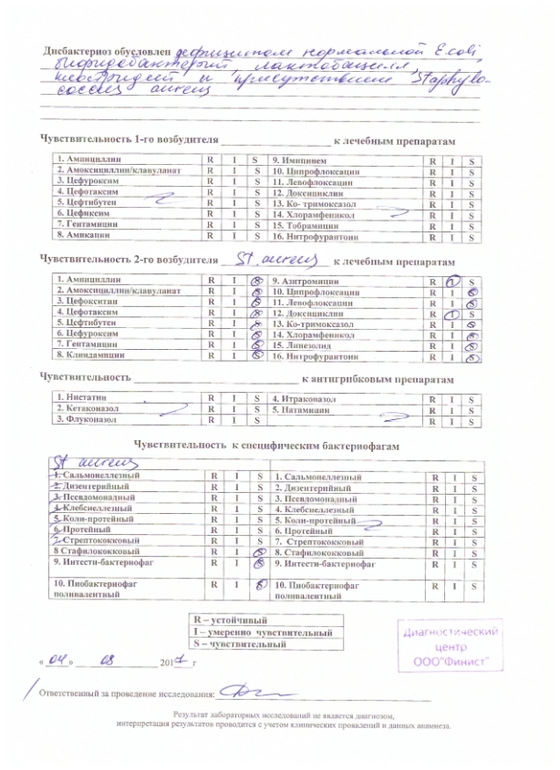 Определялась чувствительность только к одному возбудителю - золотистому стафилококку.