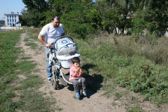 Прохожие всегда улыбаются, когда видят, как я свое семейство везу. Но отдельную симпатию заслужило автокресло, которое входит в комплект. Оно стойко выдержало Датошкино детство в виде шезлонга
