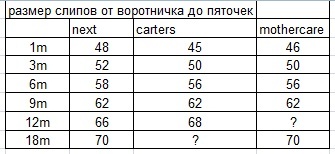 Я тоже сравнивала, только Картерс с Некстом и Мазером, так Картерс маломерит в ширину, в длину почти одинаково, кроме Некста. А Мазер и Некст пошире, наверное на пухликов)))