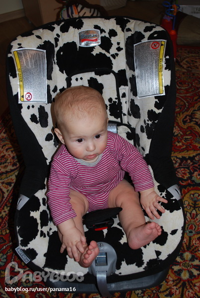 поздравляю! у нас такое же!)) в 7 месяцев ребенкиных заказали..очень удобное..но удобнее ,когда по ходу стоит..вам еще,конечно, рано..мы в год наверное переставили....еще надо к лету для него летний чехол заказать..а то на меху в жару неприятно сидеть..-пеленки всякие подкладывали..-неудобно