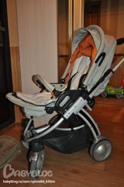 Люлькой пользовались с марта по июнь месяц, в 3,5 месяца сынуля не хотел уже в ней лежать, да и на вид ему там уже было тесновато, как-то морально давила она уже на него, хотя при желании он все еще в нее помещался, но в 4 месяца (рост сына был 65 см и вес 8500) он в нее уже с трудом влазил, она реально стала нам мала. В целом я ей осталась довольна, она нравилась мне внешне, довольно высоко расположена на шасси, не нужно сильно нагибаться к ребенку, чтоб что-то дать ему или поправить. Внутри хлопок, сын не потел. Кап оказался для нас достаточный – ветер не задувал, от солнца малыш не страдал. Москиткой пользовались редко, но удобно то что она в кап вшита. Дождевик использовали 2 раза, вроде бы не плохой – не шуршит, плотный, одевается правда сложно, так как сшит прям по люльке. То, что люлька маленькая я предполагала, поэтому то что мы рано с нее выросли меня сильно не расстроило, в 4 месяца перелегли в прогулку – погода позволяла и конструкция прогулочного блока тоже.
