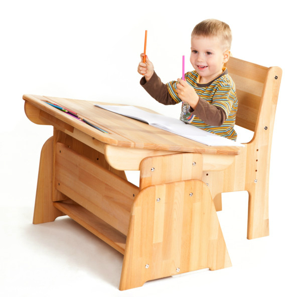 Детская парта и стул не имеют жесткой привязки друг к другу, что позволяет удобно расположиться за партой детям разных возрастов.