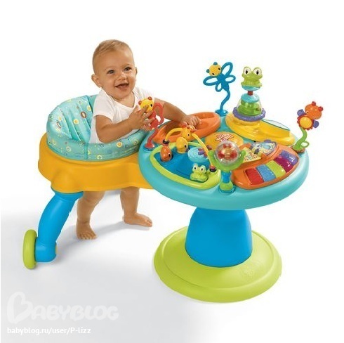 У нас такой ,очень нравится малышке!Сиденье крутится во все стороны(также можно и заблокировать),сами ходунки делаются выше\ниже,колесики снимаются,можно сделать качалку или прыгунки.