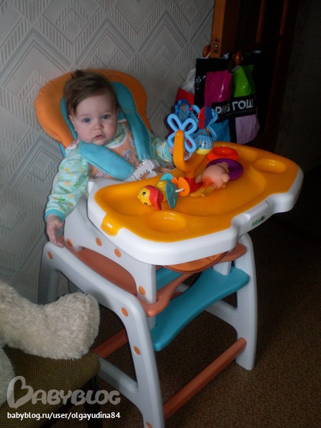 Стульчики для кормления, шезлонги, качелиНа мой взгляд вполне удобный стульчик для тех, кому жалко тратить деньги на Чико Полли. Нам достался в подарок, вполне им довольна.