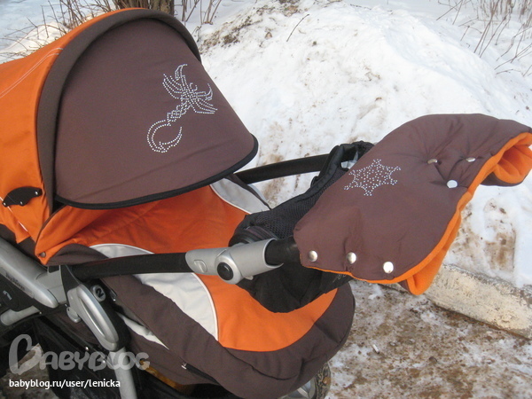 Мы в 7 мес пересели люлька с конвертом мала стала . ездили в меховом конверте и я кап переставляла чтоб лицом к маме малыш был. сейчас в конверт по легче положила в меховом уже жарко. я еще на капе где сетка пришила липучки чтоб не было дыр и заказала вот такой кап теперь нам нестрашен ветер очень довольна