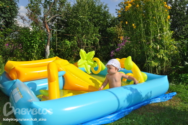 Классно! Бассейн у нас тоже есть, а на последней фото это батут? И еще вопрос: ребенок часто на батуте играл? а на горке с качельками?