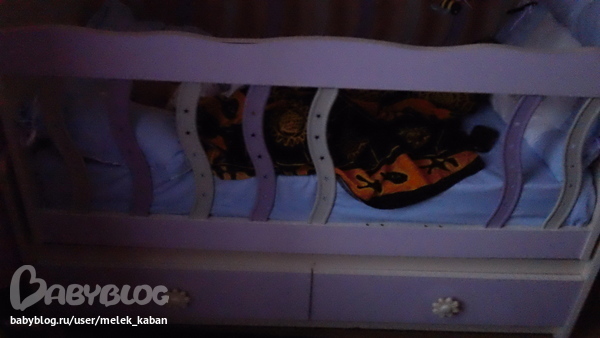 Детская комната : мебель, постельное белье, предметы интерьера и аксессуарыВсем привет. Долго думала, куда написать, ничего лучше не нашла. Жизненно важный вопрос.Вот наша кроватка. Сорри, в темноте - там сынуля под Тунисской накидкой спит. Она нам и одеяло, и гамак, и простыня, и ковер для игр, и шарф для кормлений на уллице)) Обожает ее. Итак, собственно вот в чем дело...