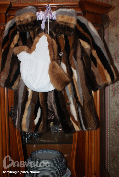 очень тёплый и непромокаемый. Нам тётя тоже сшила шубку из норки, да пусть дочь спит в ней в коляске, лишь бы тепло было. И штанишки свело-серые мы уже прикупили. Нам правдв и шапку к шубе сшили.