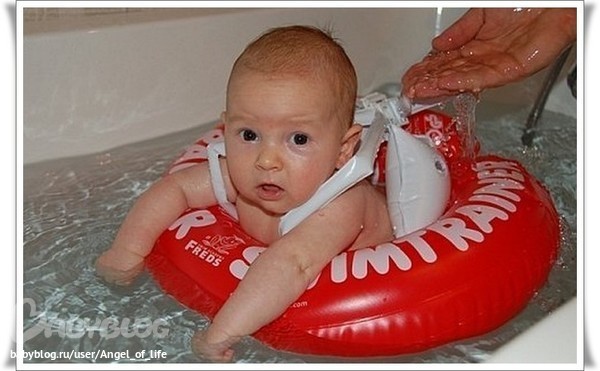 На этом этапе обучения плаванию руки ребенка не включаются. Верхняя камера красного круга достаточно большая. Это не даёт свободно двигать руками, но гарантирует малышу безопасное положение на воде.