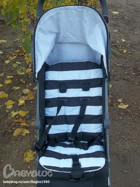 Понравился подклад капа-мягонький и нежный, такой же материал на матрасе. Матрас двухсторонний, одна сторона полоска, вторая однотонная светлая. Кармашек сзади. опять таки мелочь, но приятненькая. В окошко вверху капа видно ребенка. Жесткая подножка, не будет провисать как у макларена. Регулировка ее простая. Высота ручек мне ростом 170см оптимальная, вот как под меня. Муж 198см возит сына в сад второй день на туре, не жалуется, раньше только на шейке носил, неудобно ему было и с перегой Мини и с квинни йезз и с маклареном воло-низко.