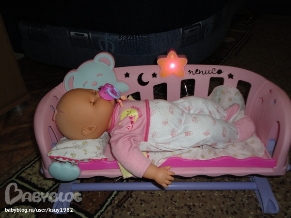 Ну это кроватки и стульчик.Отдельно хочу сказать про набор кроватка+кукла(ненука)Её дочка просила у деда мороза на праздник.Принёс он её,обрадовалась.Прыгала,прыгала,а к вечеру смотрю с братом уже в футбол куклой играют.Конечно я поарала,успокаительного приняла(как ни как 3000 руб.стоит)Могу сказать,что сделана хорошо,светильник горит разными огнями и играет музыка.Куколка тоже такая приятна..Но пришла к выводу,что моих детей ни чем не удивишь,и стоят игрушки и пыляться.Вот вроде и всё,у кого будут вопросы-отвечу