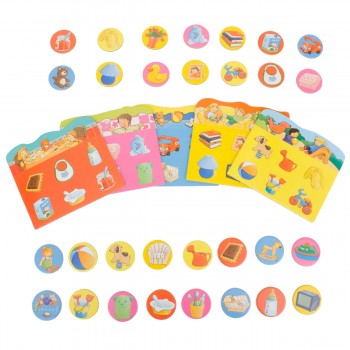 В набор входит: 5 игровых полей и 30 фишек с изображениями различных животных.