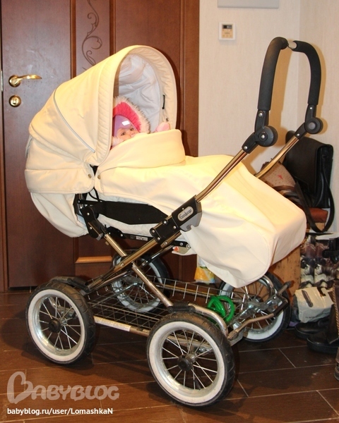 Не смотря на все отрицательные отзывы, коляской очень довольна. Широкое сидение, спим в комбинезоне и в меховом конверте, чехол на ноги очень удобный со специальной пропиткой. Капюшон может и не очень низкий, но нам ничего не задувает надувные колёса. Придраться не к чему, а после снегопада по нечищенным дорогам с любой коляской трудно идти.