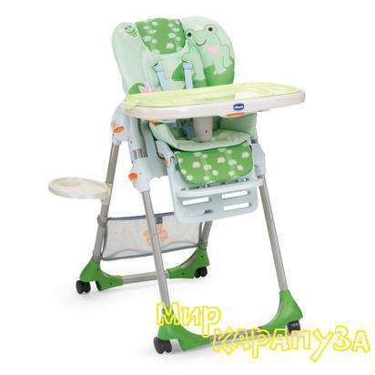 2) второй стул купили наряду с первым на дачу родителям мужа. Я особо не заморачивалась с выбором, слышала, что хвалят CHICCO POLLY, взяла его. В целом, стул не плохой, у него есть все, что есть в татамии, кроме качелей и эко-кожи. Однако, был ряд недоразумений, в частности: отсутствие нормальной перекладины между ног. Она есть, но прикреплена защелками к столику. Мало того, что деть ее постоянно выбивал ногами, так когда ребенок подрос, сажать за общий стол его без стола было практически нереально - клеенка скользила, ребенок сползал. Пристегивали ремнями, но проблема зловония меня преследовала и здесь - часть ремня между ног была уписана напрочь, пришлось ее просто выбросить. Недоразумение номер два - колески. Они, конечно, едут, но каждое в свою сторону.. Поэтому стул тащили волоком, оставляя на паркете следы от пары колес.. В общем, когда дочь подросла, стул уехал жить в кладовку, а на смену ему был куплен очень необычный следующий...