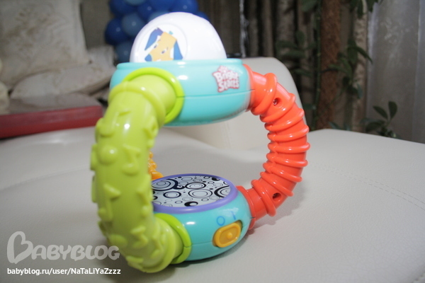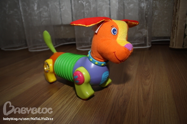 Просто музыкальная игрушка...Песни, звуки, голоса животных и огонек сверху горит. Любит ее включать и слушать