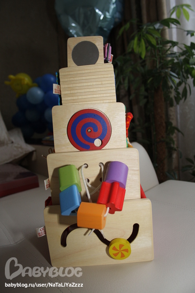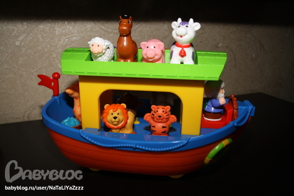 Ноев ковчег. Очень популярная игрушка здесь на ББ. Мне она тоже очень нравится. И Тёме тоже. Ставит верхних животных, нижние пока с трудом даются. Когда нажимает на свинку, сам хрюкает )) Очень смешно получается )) Нравится нажимать на Ноя и крутить штурвал