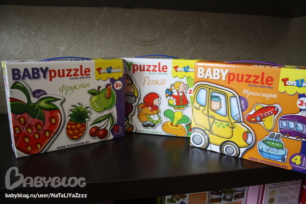 Еще пазлы. Пока изучам транспорт, пытаемся собрать самолет из двух деталей.
