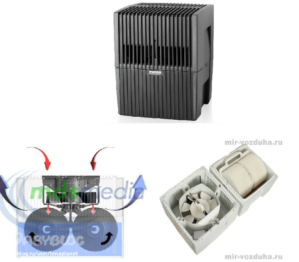 он реально хорошо увлажняет, испаряет за сутки больше 7 л. воды, то есть я доливаю воду в контейнер 2-3 раза за день, а в контейнере 3,5 л. где-то. кошка любит сидеть рядом с ним и дышать свежим воздухом)))