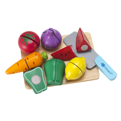 Для нас это лего, стучалка с шариками и машинка-каталка) С подобными овощами и фруктами конечно играем, но надо часто их прятать)