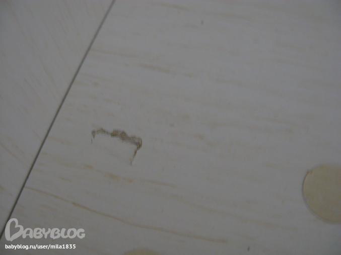 После многочисленных звонков к нам приехали представители от салона, на выломанное ДСП ссылались на инструкцию, что так и только так необходимо крепить крепежи к полке. Только ДСП повреждено, а значит не безопасно для ребенка. В салоне нас уверили, что все материалы качественные и безопасные. На многочисленные сколы сказали, что это норма. Поврежденную боковину шкафа обещали заменить, основание кровати, ссылаясь на «там все равно не видно» предложили реставрировать замазать и покрыть лаком и таким же способом убрать многочисленные сколы. Пообещали, что видимые повреждения заметны не будут. Согласились на реставрацию, поскольку нет гарантии в аккуратности замены и что наш паркет и обои не получат больше повреждений. Так же просили предоставить нам другого сборщика, поскольку данного считаем не квалифицированным. К сожалению наша просьбы не была выполнена.