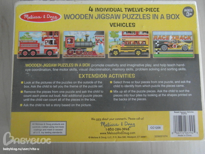 Деревянные пазлы в коробке "Транспорт" Melissa&Doug