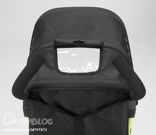 У нее понравился дизайн , стильно не обычно, при сложении опирается на подножку, спинка раскладывается , бампер есть. Капюшон глубокий , до бампера. Ширина 34 см не узкая. Два окошка , один с клеенкой как на фотке , а второй большое сетчатое внизу.