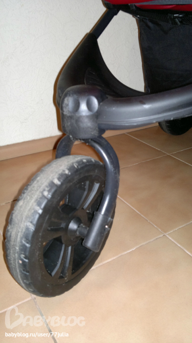 - складываясь, почти (!) не пачкает ткань. До сих пор понимаю каким образом пачкается подножка (?)... При сложении колеса оказываются все снизу, не контактируя с тканью коляски. Возможно, я ее пачкаю, запихивая в уже грязный багажник...