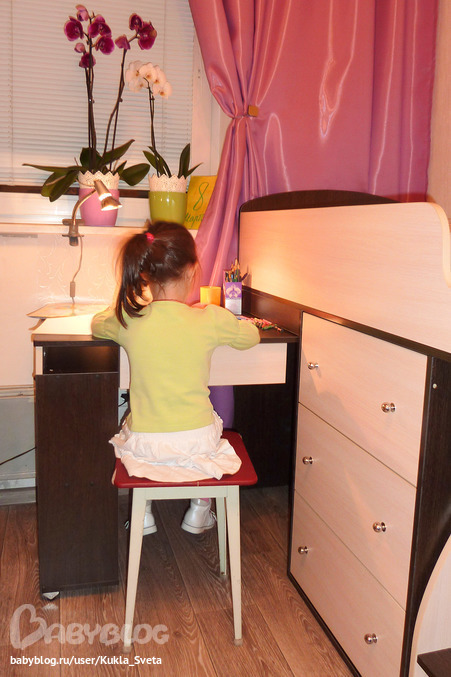 Итог: Данную кровать считаю отличным вариантом для малогабаритных квартир, с минимумом свободного места, для детей от трех лет (ну сужу по своей дочке, т.к. до трех она крутилась юлой по кровати, мне было бы страшно на тот момент переселять ее в такую). Производитель изготавливает нестандарт как в цвете, так и в размере, что является несомненным плюсом, когда приходится подбирать мебель под интерьер, а так же отталкиваясь от каждого сантиметра комнаты.