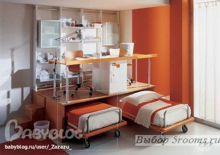 Столы под кроватями не устраивают совершенно, поэтому под кроватью должны быть ящики ( но не полки), либо выкатной стол, но стол если есть, то:
