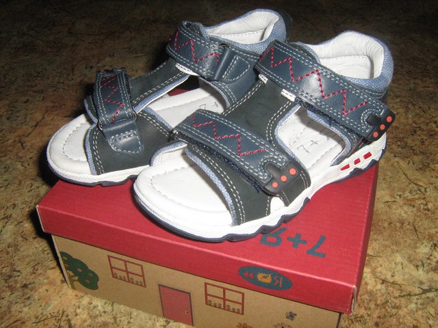 Сандалики 7+я.изначально хотела суперфиты или минимены,но мерить их у нас негде((((((а брать вслепую не рискнула.поэтому взяла прошлогоднюю фирму,которой осталась очень довольна!