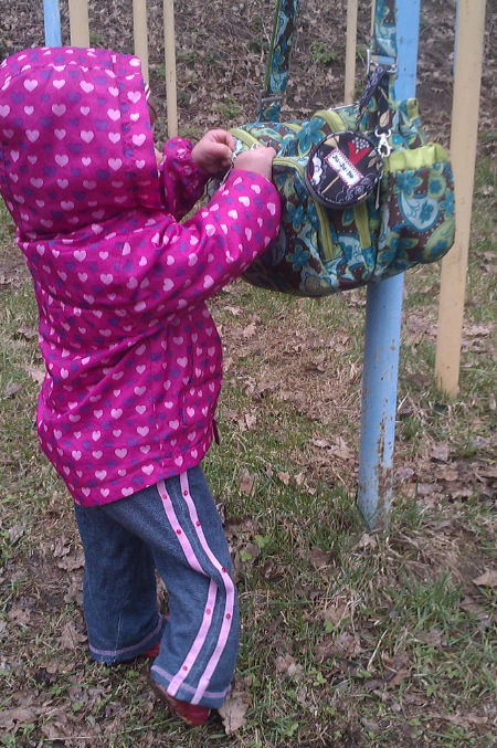 Так вот, она у меня сумка-путешественница и палочка-выручалочка, если иду с ребенком, то только с этой сумкой (и зимой и летом). Размера мне достаточно, на коляску вешаю просто за ручку. Мак мой она не переворачивает. Простая в уходе и очень удобная мамская сумка.