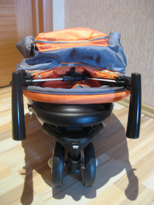 Готово, коляска собрана. Все колёса можно снять, для большей компактности или чтобы помыть.
